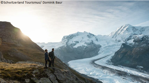 4. Tag, Dienstag 18. August 2026 Saas-Fee – Brig:Ausflug nach Saas-Fee, der Perle der Alpen im Oberwallis. Der autofreie Ort liegt auf einem sonnigen Hochplateau des Saastals und ist umrahmt von der Mischabel-Bergkette, die insgesamt 11 Viertausender umfasst. Zurück in Brig lernen Sie bei einer Rundfahrt mit dem Kleinen Simplon Express die schöne Altstadt kennen, u.a. mit dem Stadtplatz und dem Stockalperschloss.