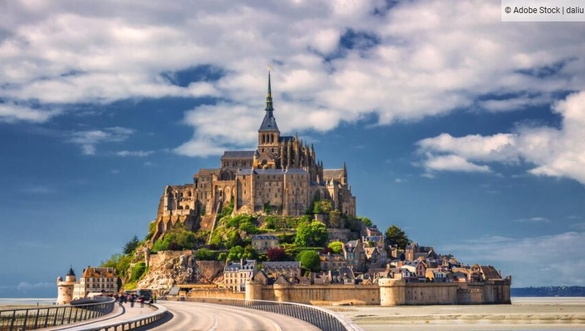 5. Tag, Donnerstag 21. Mai 2026 Ausflug Mont-Saint-Michel:Der jahrhundertealte Klosterberg thront in der Bucht und ist durch die neue Brücke wieder vollkommen vom Meereswasser umgeben. Das berühmteste Kloster Nordfrankreichs wird als „Wunder des Abendlandes“ bezeichnet. Mit Shuttlebussen wird die Brücke überquert, Aufstieg durch schmale Gassen zum Eingang des Klosters (nicht für geh-eingeschränkte Personen geeignet), Besichtigung mit Audioguides gegen Aufzahlung.